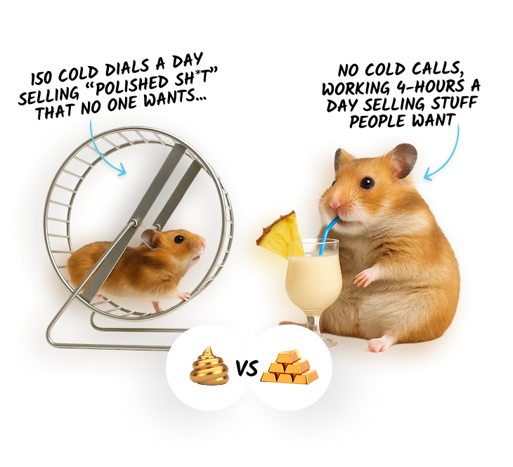 Without cold calls, starting from $0 each month, or selling your soul for a sale just to cover rent… If you bought into the commission-only “sales dream” and all you’ve got is burnout & breadcrumbs - this is your way out.