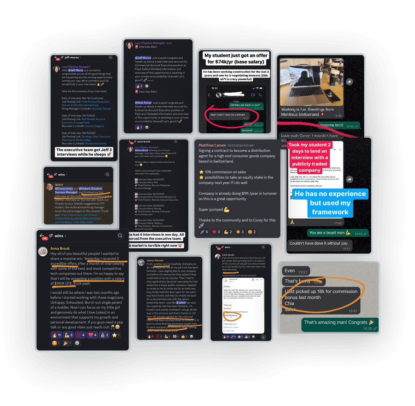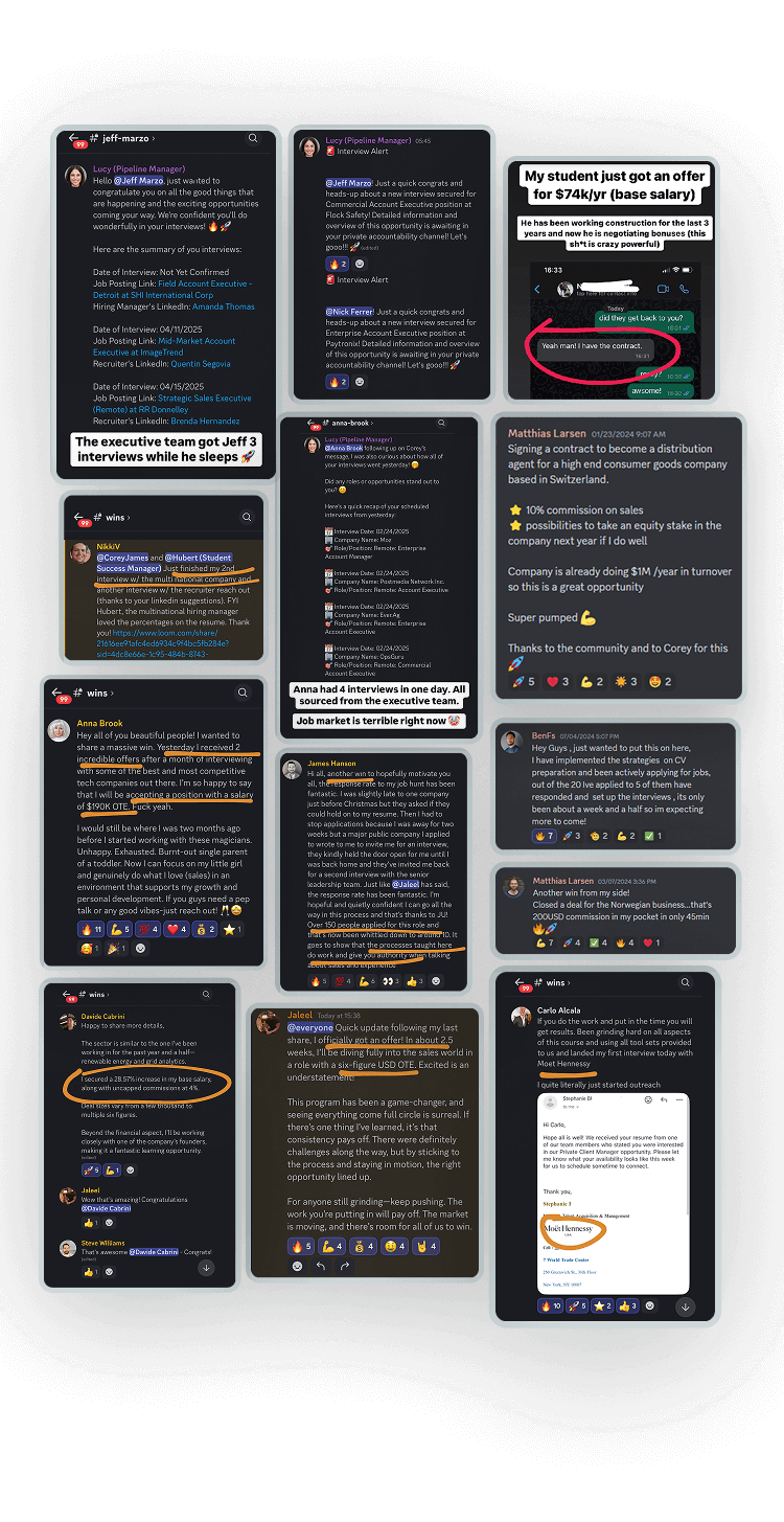 "I started as an appointment setter and became a high ticket closer. My comp plan was so unstable that I went back to working at the beer garden… After 3 months of working with Corey I landed a role as CSO at a small food group in Switzerland. $105,000 base salary..